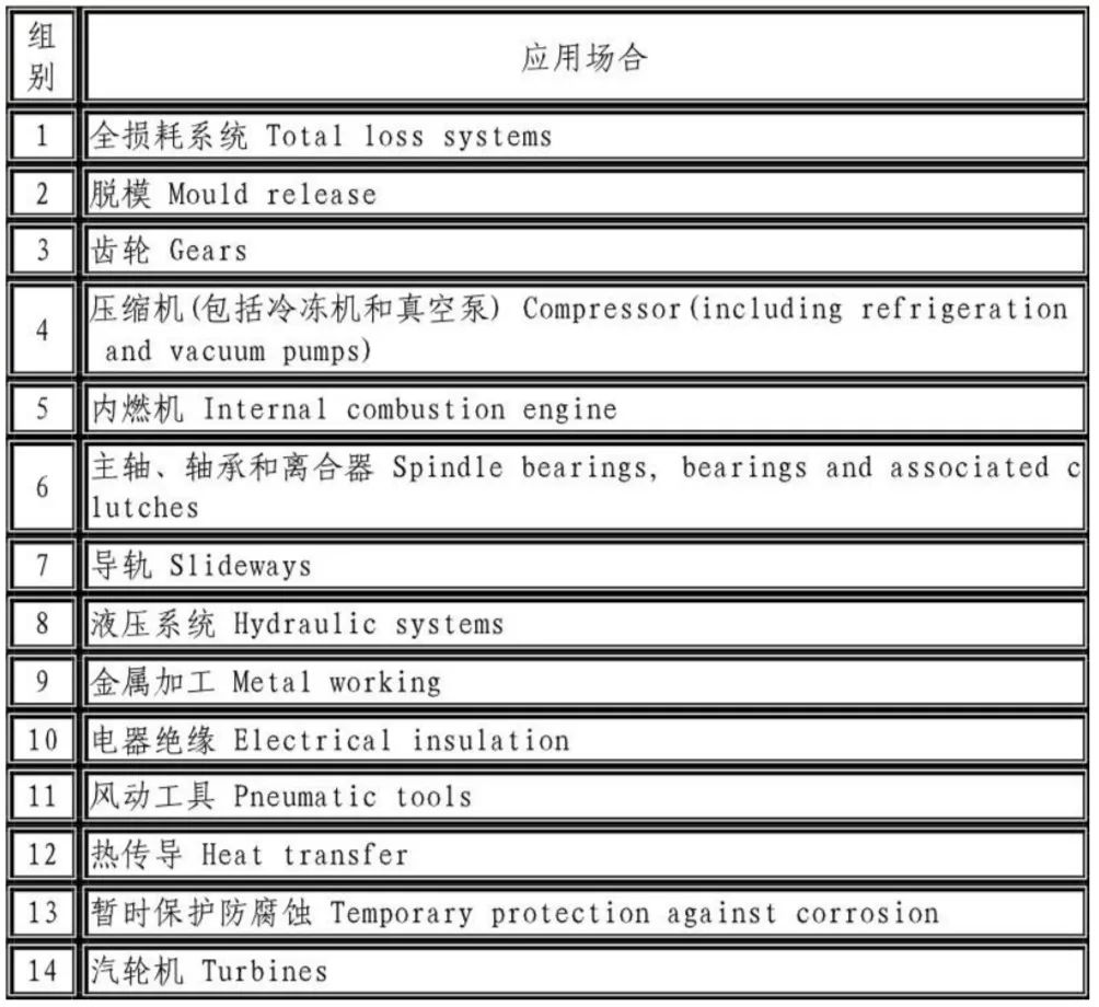 國際標(biāo)準(zhǔn)化組織(ISO)制定了ISO6743/0潤滑劑、工業(yè)潤滑油及有關(guān)產(chǎn)品(L類)分類標(biāo)準(zhǔn)。中國等效采用ISO6743/0標(biāo)準(zhǔn)。制定了國家標(biāo)準(zhǔn)GB7631。潤滑劑和有關(guān)產(chǎn)品(L類)的分類。GB7631.1根據(jù)應(yīng)用場(chǎng)合將潤滑劑和相應(yīng)產(chǎn)品分為以下各組。GB7631.1潤滑劑和有關(guān)產(chǎn)品(L類)的分類第1部分。